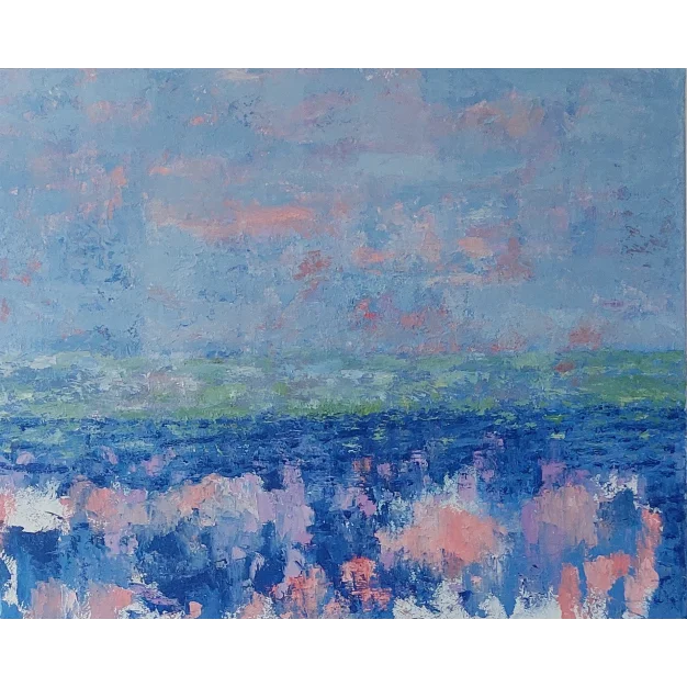 impressionistic work, atmospheric, flamingos and the lake in South France, you feel the warmth.